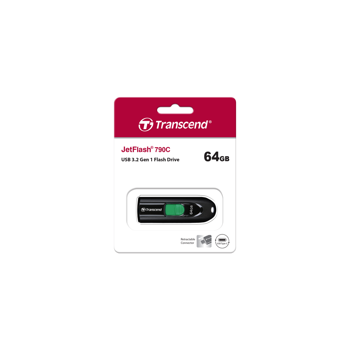 TRANSCEND - TS64GJF790C - 64GB, USB 3.2, Pen Drive, Type-C, Capless Black