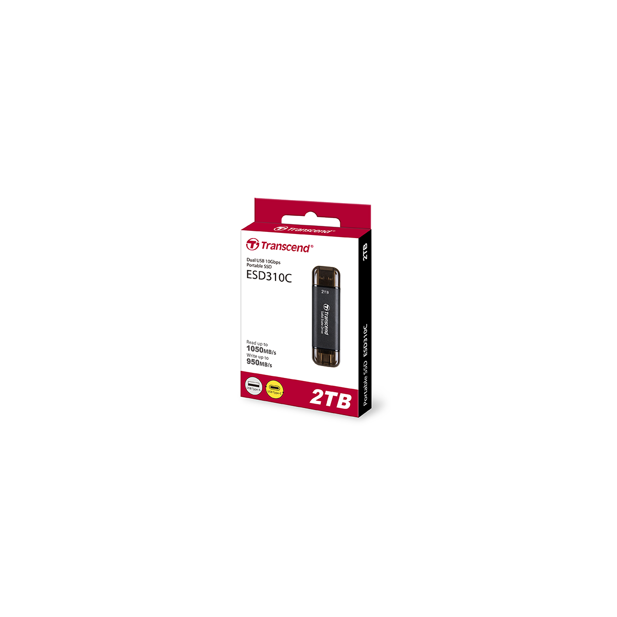 TRANSCEND - TS2TESD310C-2TB, External SSD, ESD310C,USB 3.1 Gen 2, Type - C / Type - A - Dual Port Pen Drive